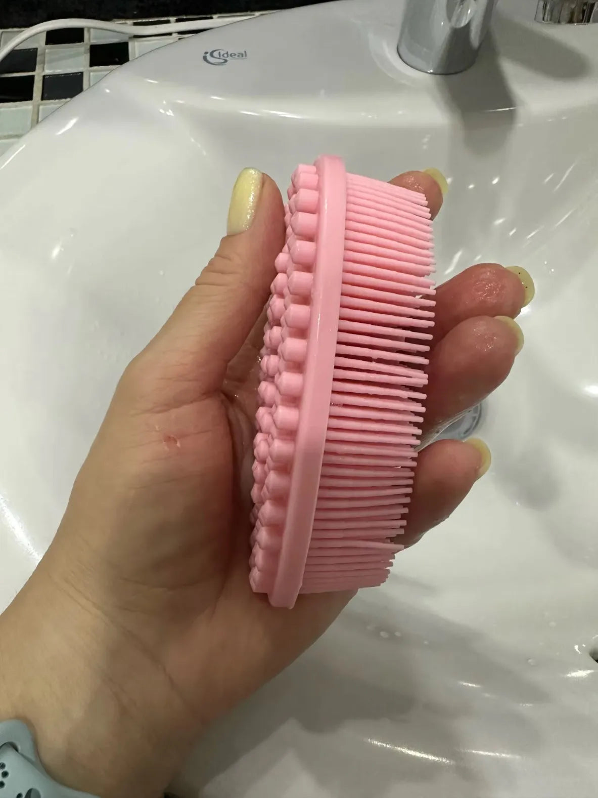 Using this brush is a game-changer when bathing my dog. The silicone feels gentle, and bath time is no longer a wrestling match 😉👍